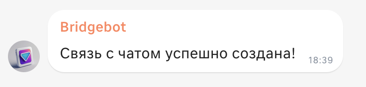 Если все действия выполнены правильно, в чате Мессенджера от бота придет сообщение об успешном создании связи между чатами: