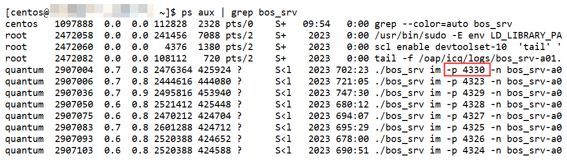 ps aux | grep bos_srv. Порт задаётся аргументом-p: -
