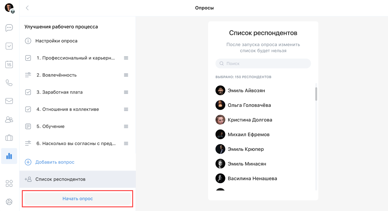 Чтобы начать опрос, нажмите на кнопку Начать опрос: