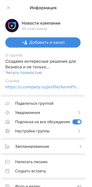 Чтобы скопировать ссылку на группу/канал, нажмите на иконку