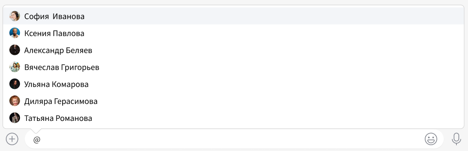 В отобразившемся окне впишите свой вопрос и варианты ответа. Чтобы отметить пользователя в вопросе, начните вводить @ и выберите участника чата/группы в отобразившемся списке.