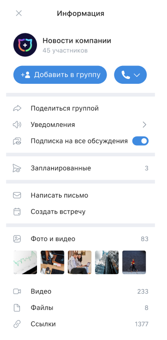Чтобы переслать ссылку на группу/канал, нажмите на иконку
