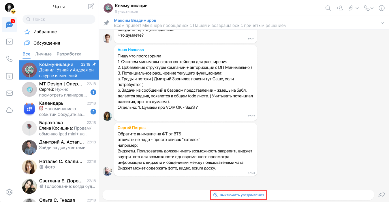 Чтобы выключить уведомления канала, перейдите в канал и нажмите Выключить уведомления: