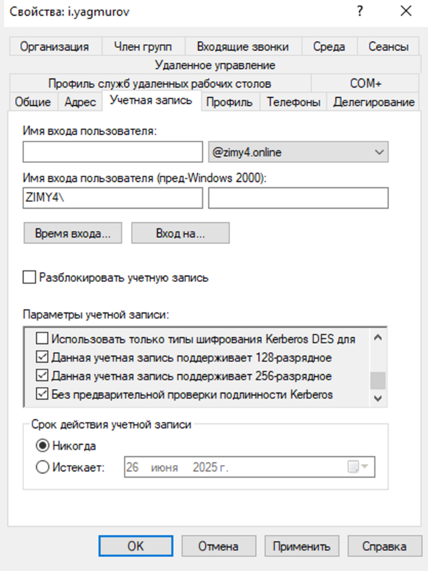 - UsersDN — атрибут distinguishedName из Active Directory;