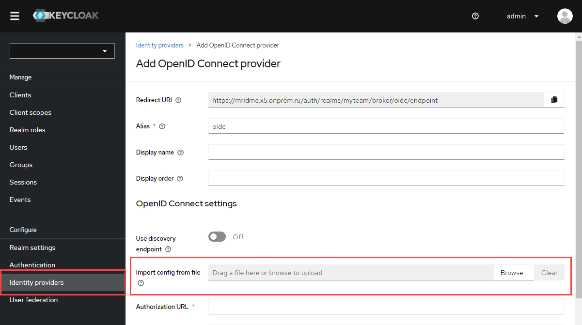 Ниже представлено добавление провайдера аутентификации при использовании протокола OIDC. Если Вы используете протокол SAML, перейдите к разделу Протокол SAML.