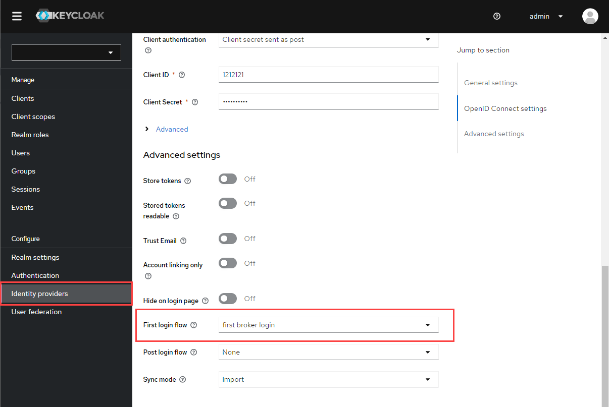 Вкладка Credentials → поле Client Authenticator → указать Client Id and Secret: