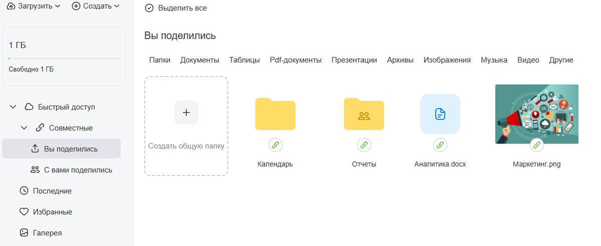 Все файлы, которыми вы поделились