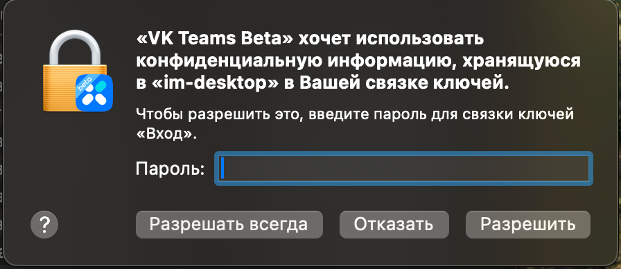 Запустите приложение. Во время первого запуска может появиться окно с просьбой ввести пароль для доступа к ключу “im-desktop”.